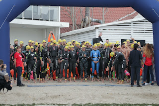 susidūrimo su medūzomis, o virš vandens bandžiau kiek įmanoma laikytis krūvoje. Po pirmo apsisukimo plūduro, laukė apie 2 km tiesioji
